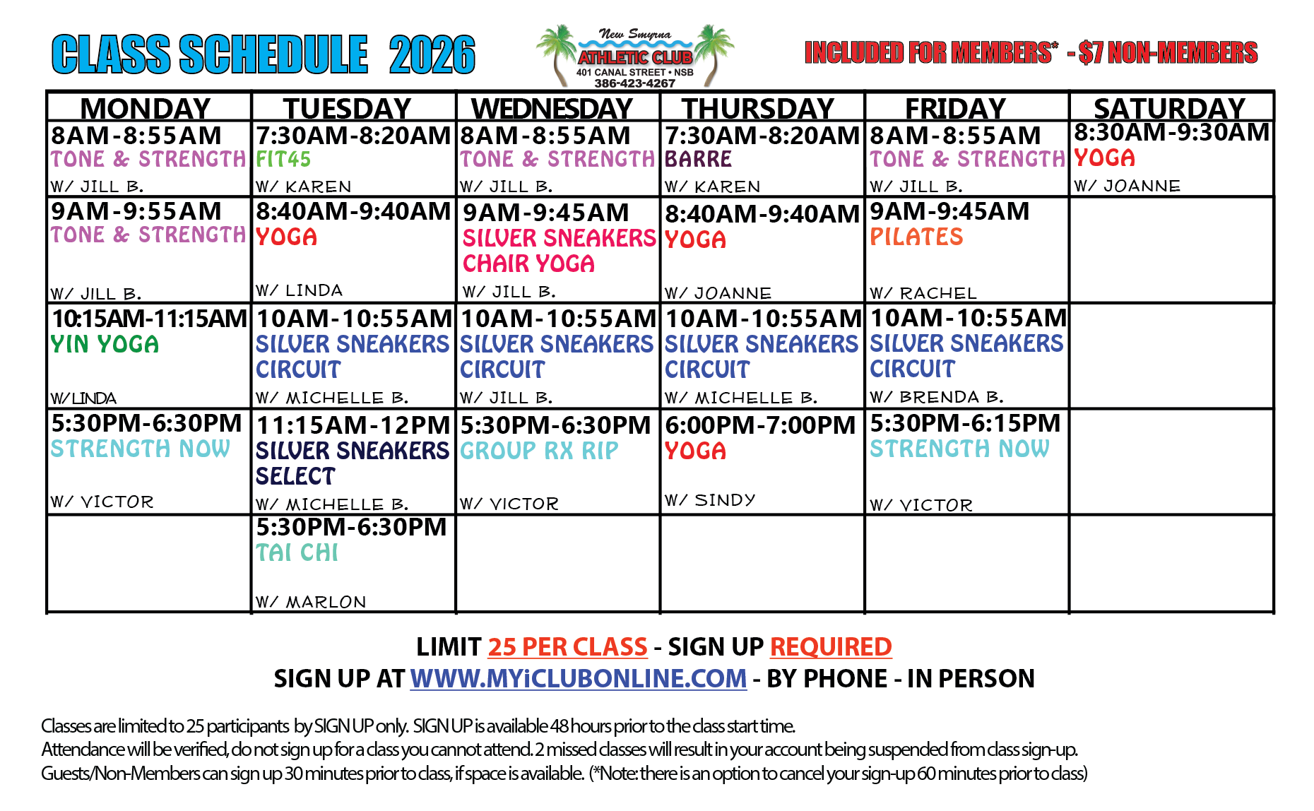 BARRE (USING CHAIR): Barre is a fun, low-impact workout that sculpts long, lean muscles using light weights, bands, straps, blocks, and balls. With controlled breathing and stretching, you’ll tone your body and mind, improve balance, and build core and lower-body strength. Using a chair for support, Barre blends small, precise movements with isometric holds—perfect for all fitness levels.